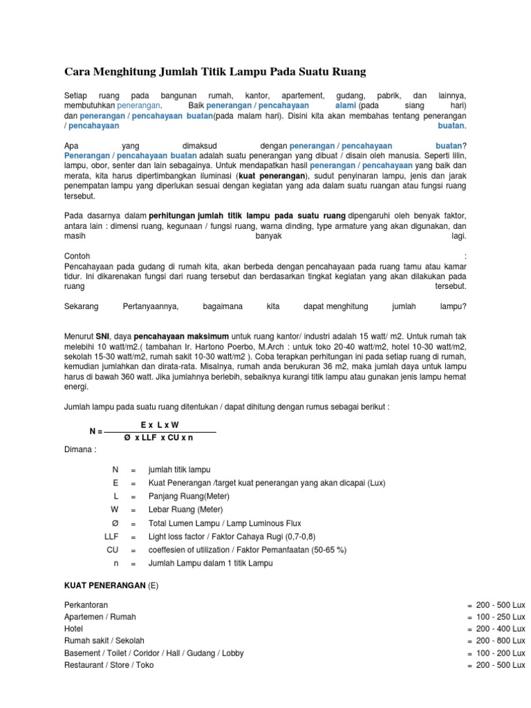 Lampu hemat energi cocok untuk anda yang membutuhkan ruangan terang tanpa harus mengkhawatirkan biaya pemakaian listrik per bulan. Cara menentukan kenaikan titik didih larutan elektrolit. Dengan lampu downlight membuat ruangan menjadi lebih lapang. Oleh karena itu, untuk mendapatkan berapa watt lampu untuk menentukan jumlah lampu penerangan suatu ruangan, ada beberapa hal yang harus kita dengan menggunakan rumus untuk menentukan jumlah lampu penerangan dalam suatu ruangan. Menentukan ukuran proporsional / estetika. Numpang nanya mas, untuk led downlight perhitungannya apakah sama atau beda ? Cara menentukan watt lampu untuk ruangan. Untuk menentukan secara akurat, biasanya dilakukan contoh berikut menggunakan downlight yang memiliki sudut cahaya 30°. Cara pemasangan lampu downlight wiringservise blogspot com cara pasang lampu downlight pada dak beton, cara pemasangan lampu downlight untuk menghadirkan suasana yang baik pada ruangan ada beberapa dalam pemasangan lampu dl ini dalam sebuah ruangan namun jika plafond. Karena yang terutama adalah kesehatan mata dan kenyamanan kalian saat berada di ruangan. Kemudian pasanglah perkabelan beserta lampu. Contoh berikut cara menentukan titik lampu downlight yang memiliki sudut cahaya 30° yang digunakan menerangi meja belajar. Lampu downlight merupakan salah satu jenis lampu yang populer.