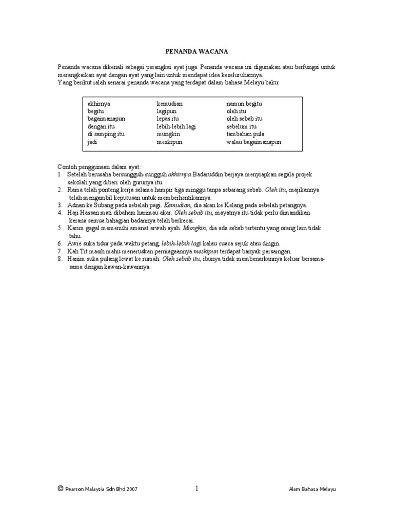Senarai Penanda Wacana In English from imgv2-2-f.scribdassets.com Hal ini dikatakan demikian kerana 3. For more information and source, see on this link : Senarai penanda wacana bahasa melayu. Senarai penanda wacana bahasa melayu. Penutup surat rasmi bahasa melayu surat rasmi c. Penanda wacana penanda wacana i. Contoh penanda wacana bahasa melayu. Doc penanda wacana suriya jash academia edu.