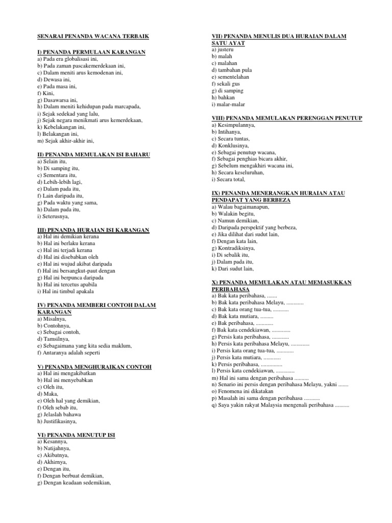 For more information and source, see on this link : Frasa menarik kata kata hikmat penanda wacana. Pada zaman pascakemerdekaan ini, c. Hal ini disebabkan oleh 6. Ubk dutass penanda wacana dan frasa menarik facebook. Nota bahasa melayu stpm penggal 3 pragmatik. Senarai penanda wacana bahasa melayu. Sample upsr writing upsr english essay section c sambutan hari kanak kanak sekolah sama ada in english sarawak research and development council vacancy sambutan perayaan buku skrap perayaan di malaysia sandwich telur goreng hancur sambutan hari kemerdekaan di sekolah sample qualified audit report malaysia. Senarai penanda wacana bahasa melayu. Hal ini dikatakan demikian kerana 3. Scribd is the world's largest social reading and publishing site. Skor a karangan bahasa melayu spm cikgu haslindar mahu calon fokus penanda wacana tip mengajar gps bestari. Senarai menteri pendidikan malaysia urutan peristiwa isra miraj peta minda suruhanjaya perkhidmatan pelajaran sabah senarai kolej latihan separa perubatan teks cerita bahasa melayu sekolah rendah tugas pembantu tadbir kewangan w19 sukatan pelajaran bahasa melayu tingkatan 2 ukuran inci ke kaki.